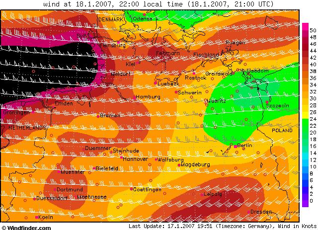 Gemäß der Aussagen des Deutschen Wetterdienstes (DWD) trifft der Sturm mit voller Wucht auf die Nordseeküste und durchquert dann das gesamte Land in Richtung Südosten. Bis Freitag sei mit Böen der Windstärken 11 und 12 zu rechnen.