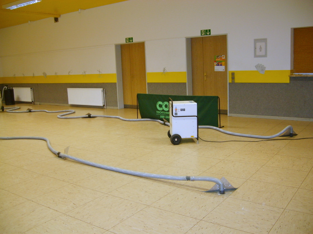 aufgrund eines Wasserschadens und der jetzt erforderlichen Trocknung steht uns die Halle des Mehrzweckhauses vom 24.04.2008 - 12.05.2008 sehr eingeschränkt mit nur der halben Fläche zur Verfügung. Die Trocknung zum jetzigen Zeitpunkt ist auch zur Verhinderung von Folgeschäden unumgänglich.