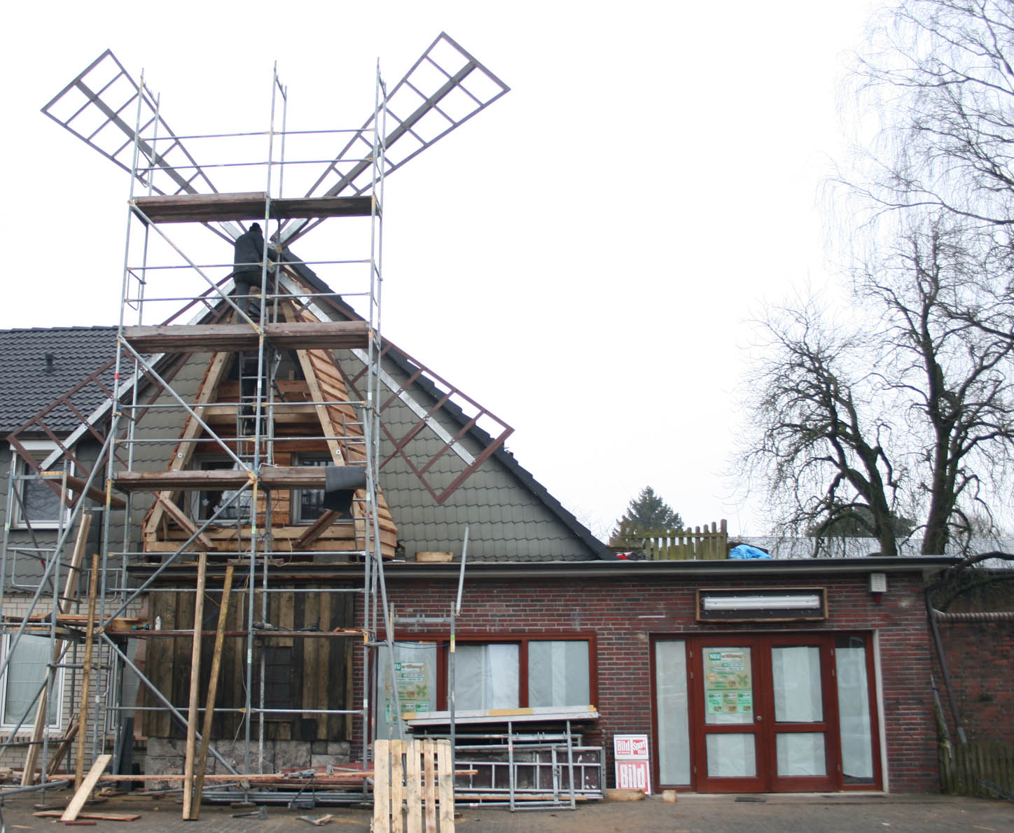 Direkt an der B 75 wird derzeit kräftig gebaut. Am 5. März eröffnet in der Lübecker Straße 6 eine neue Filliale der Hoisbütteler Mühle. Das Bäckereirestaurant hat dabei einen ganz besonderen Blickfang erhalten: Ein Windrad, das aus dem sonst eher unscheinbaren Laden eine rustikale Windmühle macht.