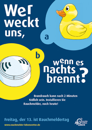 Freitag, der 13. wird Ihr Glückstag, wenn Sie heute Rauchmelder installieren" - das ist das Motto des diesjährigen Rauchmeldertages am Freitag, dem 13. August 2010.