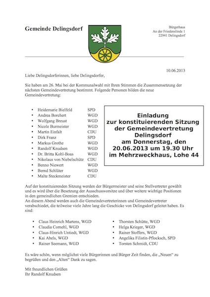 Liebe Delingsdorferinnen, liebe Delingsdorfer,