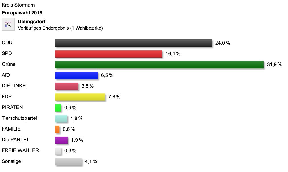Das vorläufige Endergebnis der Europawahl für Delingsdorf.